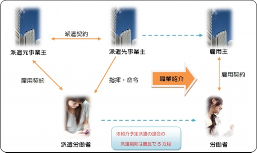 紹介予定派遣とは、派遣元が労働者派遣の役務の提供の開始前または開始後に、当該労働者派遣に関わる派遣労働者及び派遣先について、職業安定法その他の法律による許可を受けてまたは届出をして職業紹介を行い、または行うことを予定してるものをいいます。